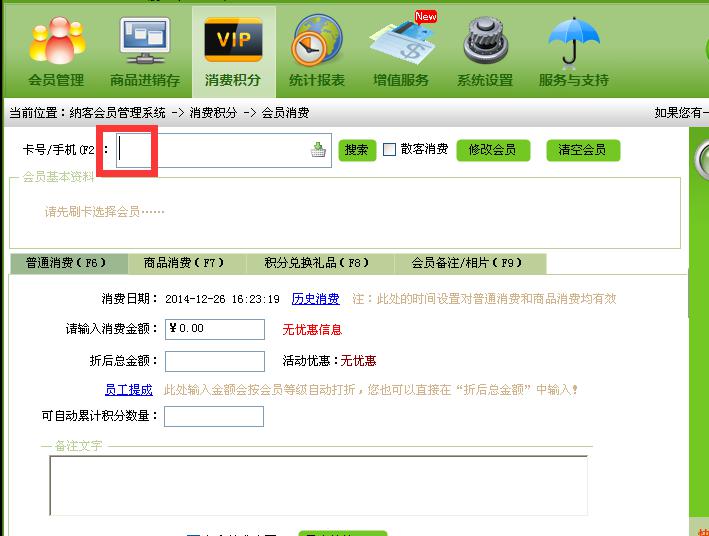 如上图,如果光标没有在卡号的刷卡框里,是不能刷卡成功的。磁条卡刷卡器连接成功后是绿色的灯是亮的,磁条卡向下面向自己的刷卡的时候灯会灭一下另外刷卡成功刷卡器会滴的一声。如果上诉条件满足的话,刷卡是肯定可以刷卡成功的,如没满足则不会成功读出卡号 。