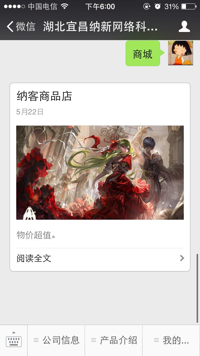 微信输入框回复商城,弹出商城框。点击阅读全文,弹出所有的商品信息,商城的会员,微信会员卡和系统的会员都是同步关系。