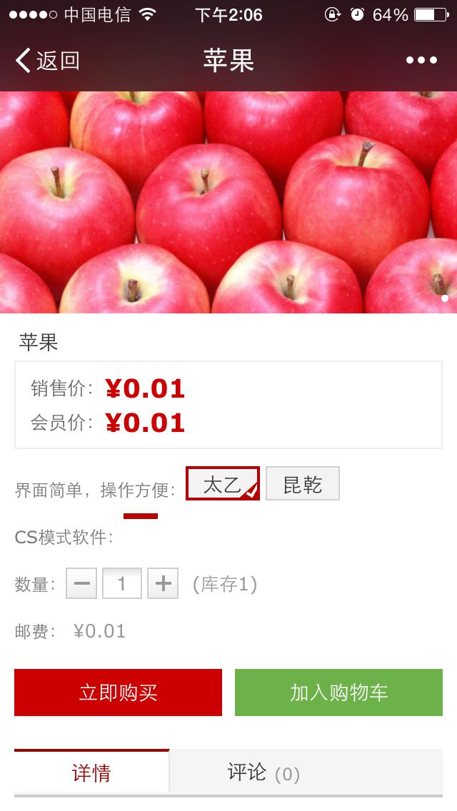 选中产品直接订购。产品的分类价格都是在后台直接设定好的。点击立即购买即可用微信零钱宝或者微信银行卡支付。
