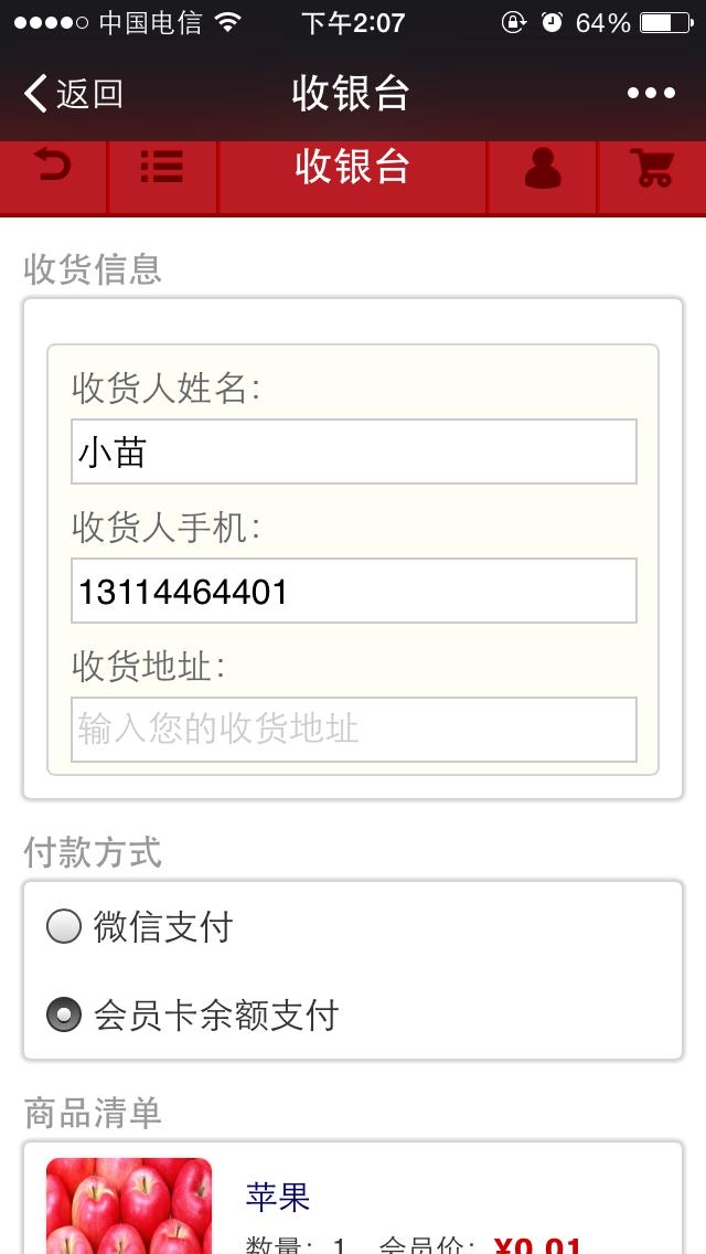 订购后填写收货地址会员卡或者微信支付,订单直接到了微信后台,在后台可以查看到所有客户的订单信息并且可以执行发货 。发货完成后 ,客户在微信里面可以直接查看发货物流信息。