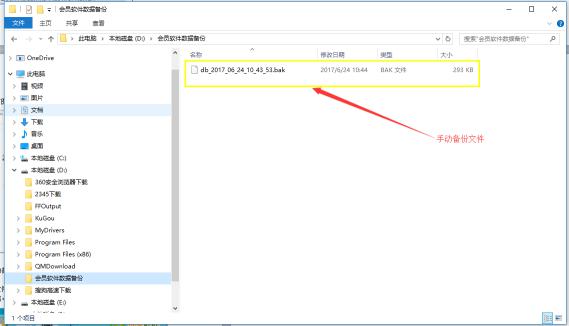 通常情况下,软件的默认安装路径是D盘,所以会在D盘生成一个“会员软件数据备份”的文件夹用于存储数据,如下图。