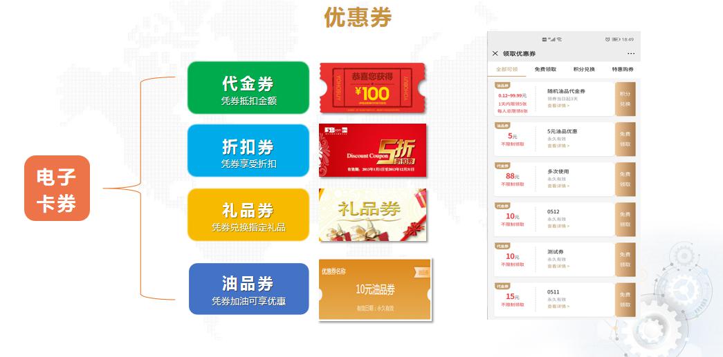 2、智慧营销:持续提升加油站的业绩,通过微信端自动推送储值优惠政策,油品劵、代金劵、抵扣劵、礼品卷;劵劵换气沉睡会员