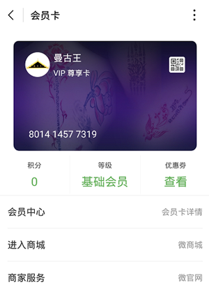 1、 会员卡包功能,会员可领取会员卡,查看消费情况;
