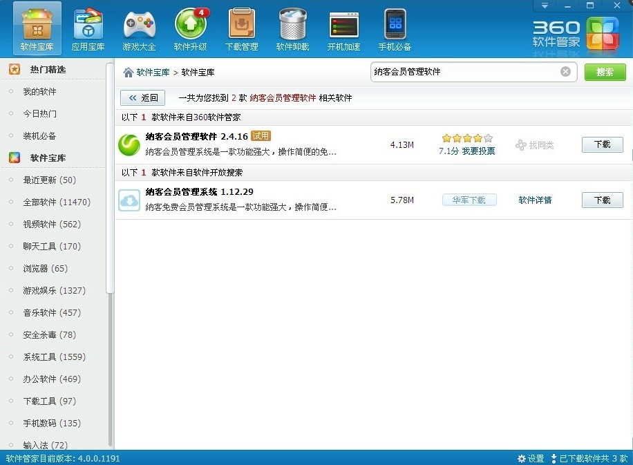 极悦注册会员管理系统在受到越来越多的客户认可的时候,咱们会员管理软件也扩展了多种不同的下载方式,除了在我们极悦注册会员管理系统的官网上下载,各种软件园的下载之外,现在360软件管也收录了咱们极悦注册会员管理软件,大可以在每日给电脑体检,清理电脑垃圾的时候来顺便看看咱们极悦注册会员管理系统的一新动态。