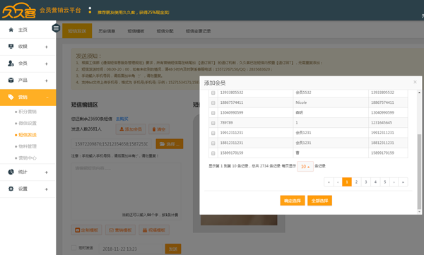4、编辑好短信后,能够一键发送给所有会员;